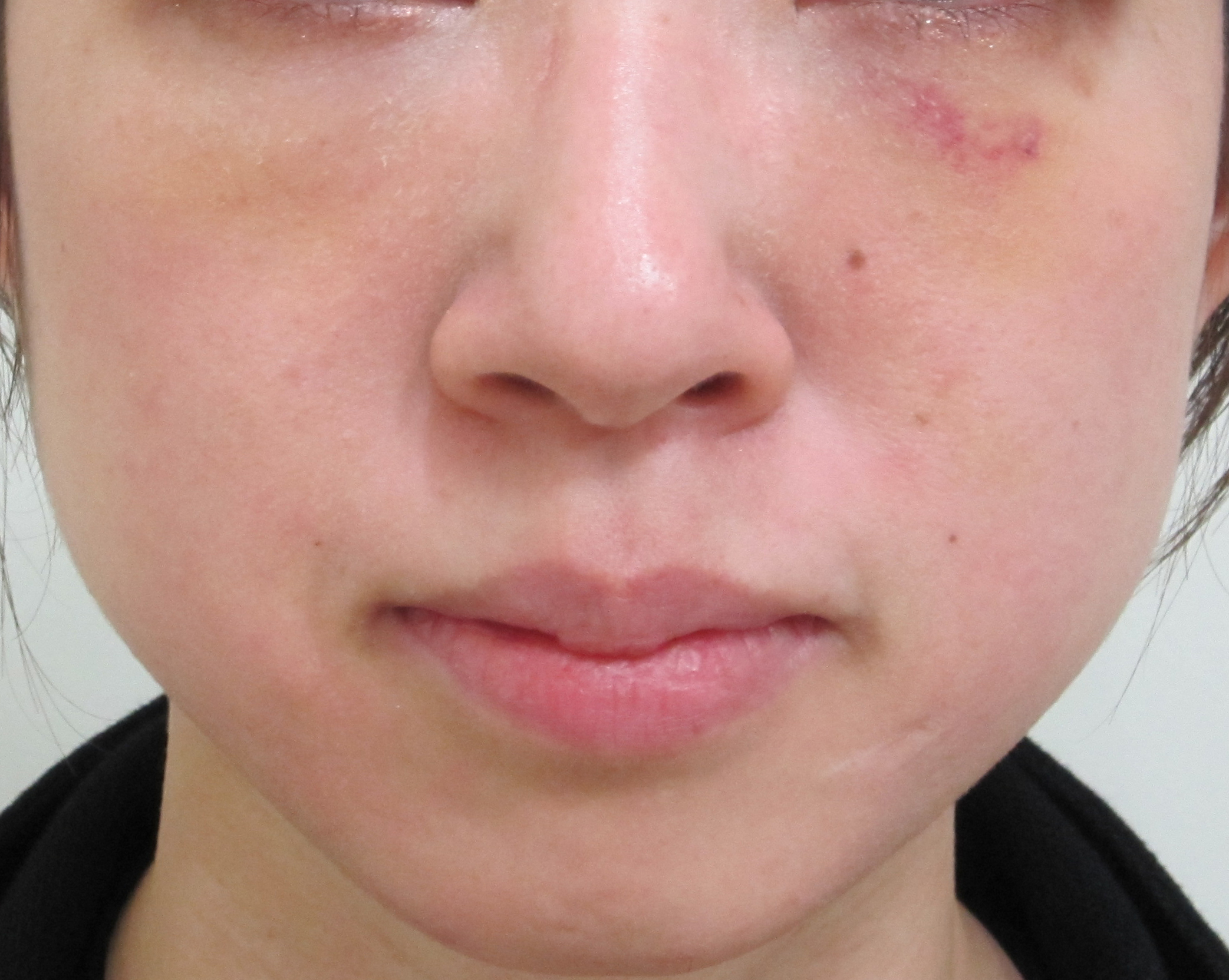 術直後・・・血が出やすい体質のようで、左側は内出血が出ています。