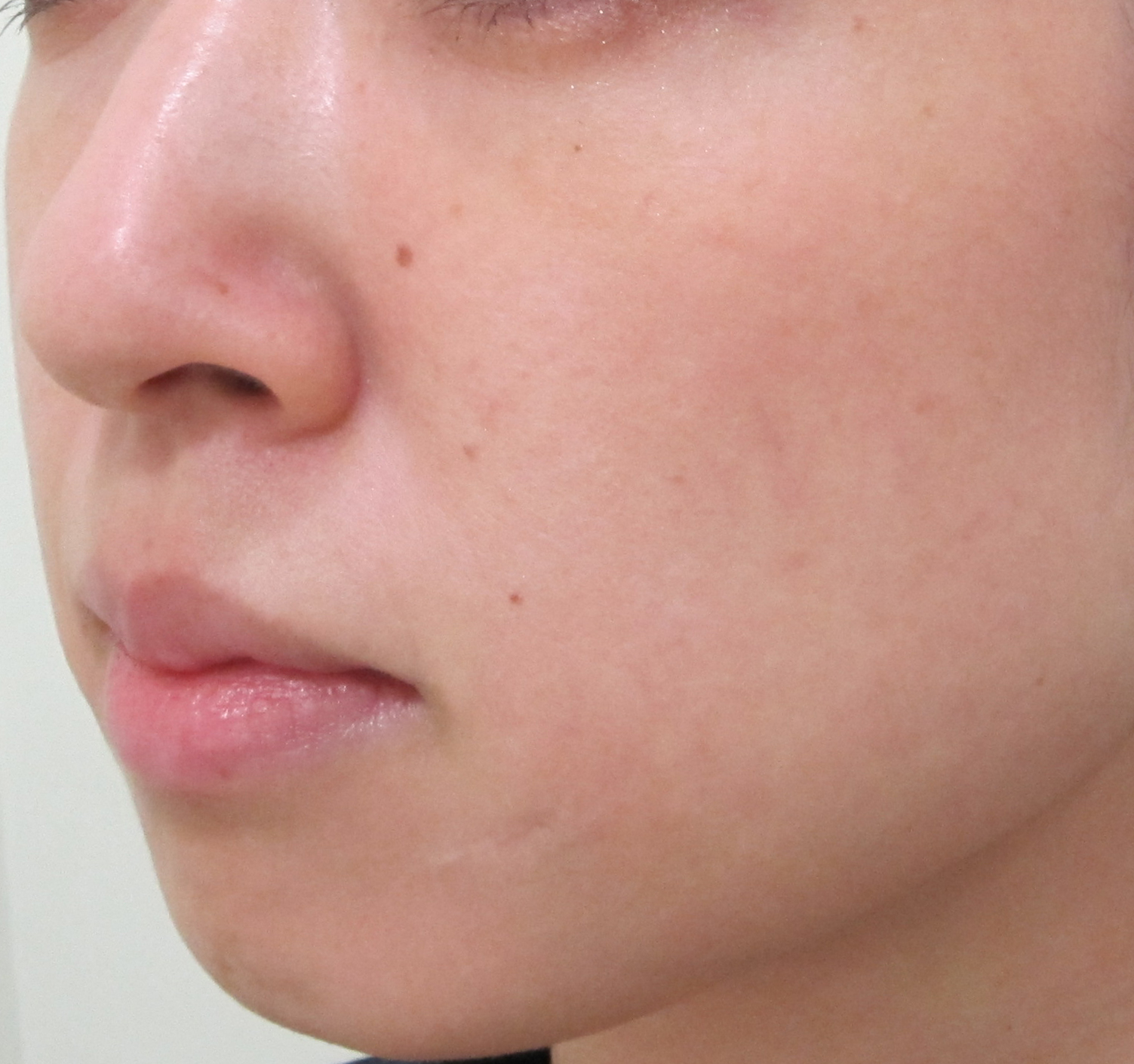 グロースファクターの注射の跡がよく見るとわずかにあります。