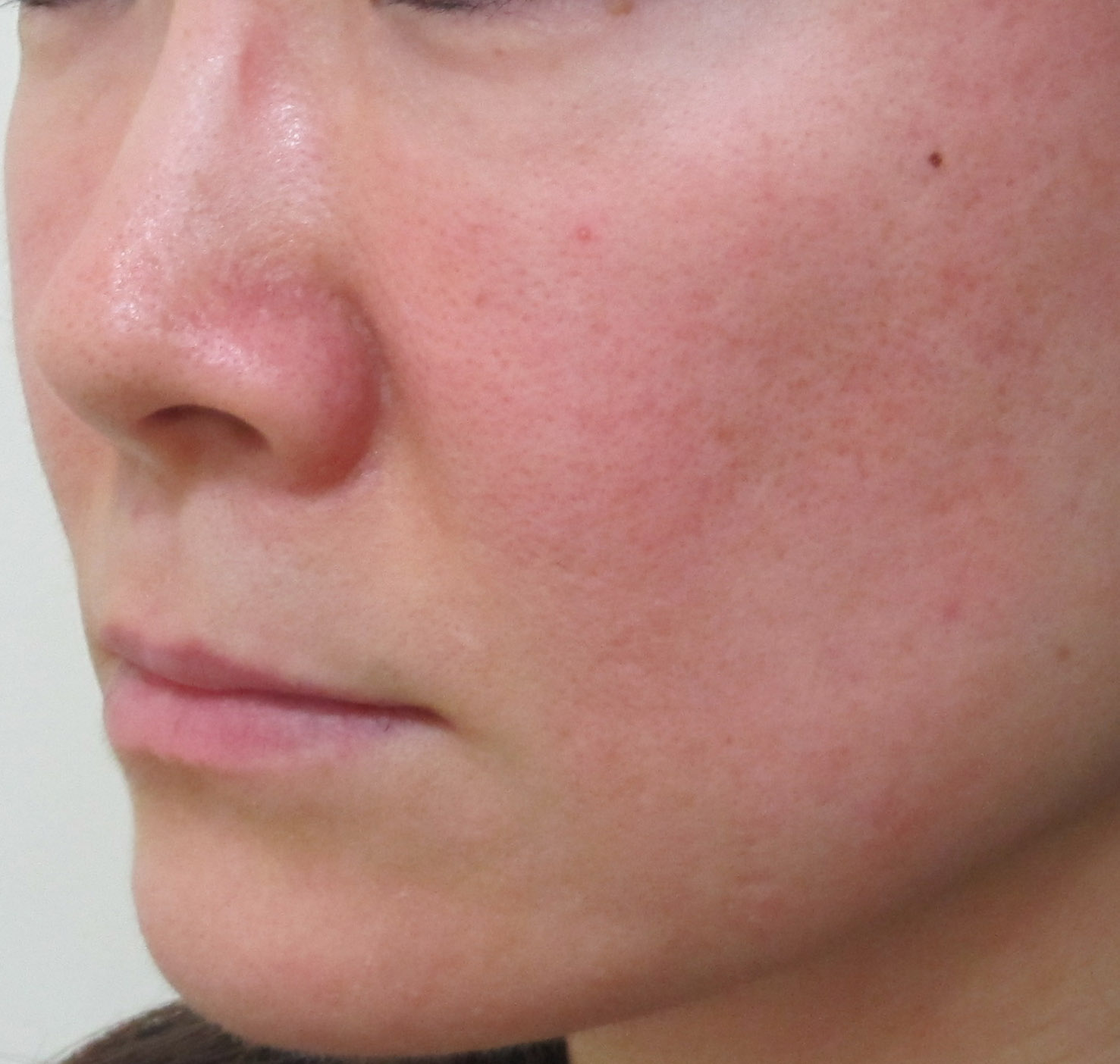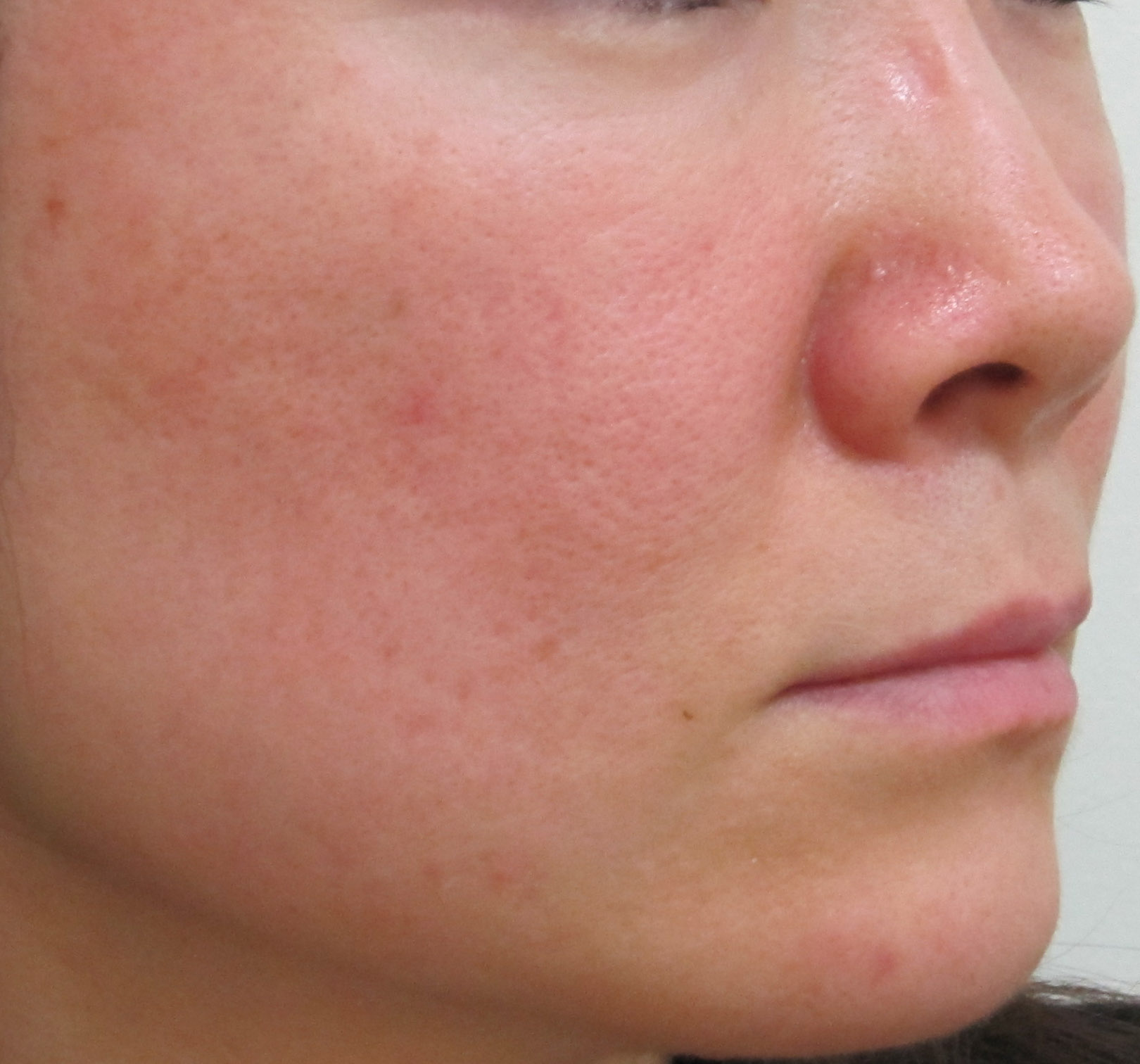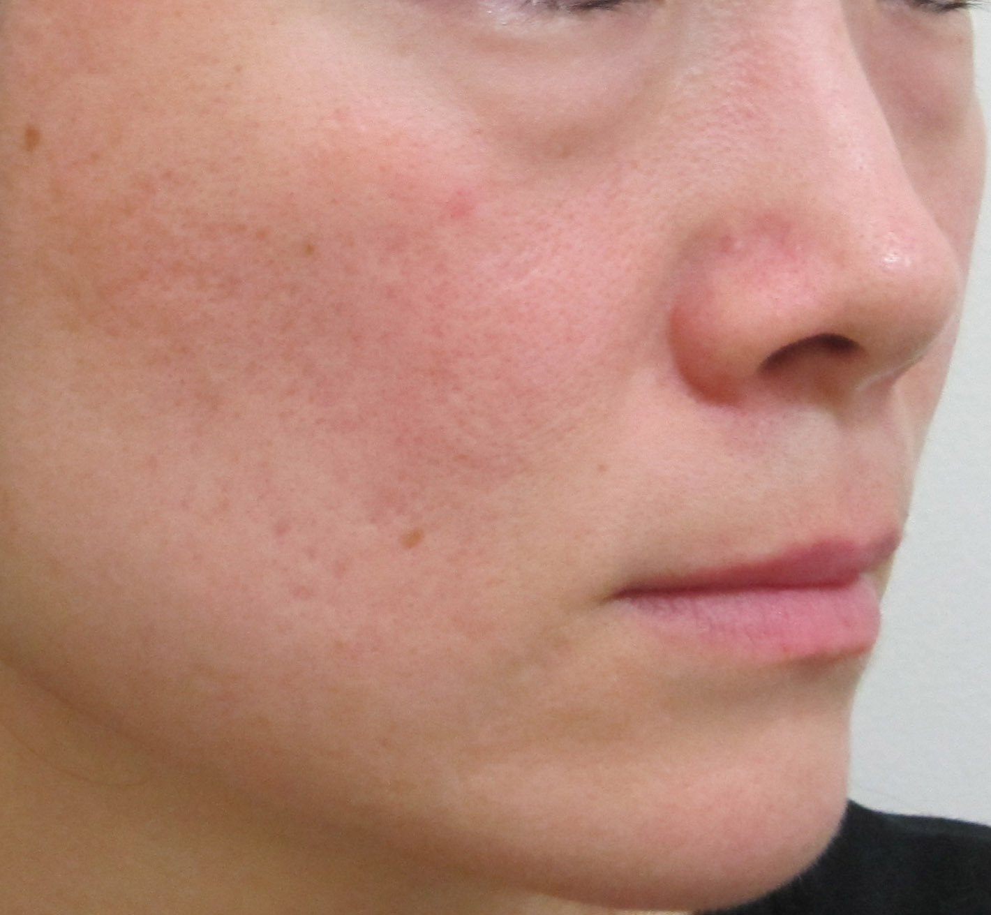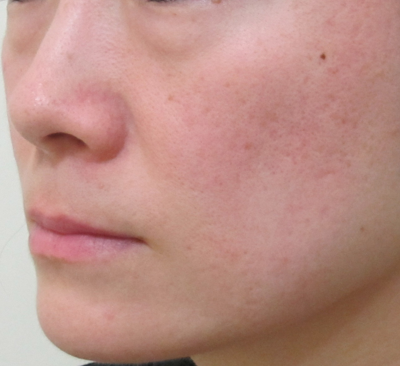 グロースファクターの注射の跡がよく見るとわずかにあります。
