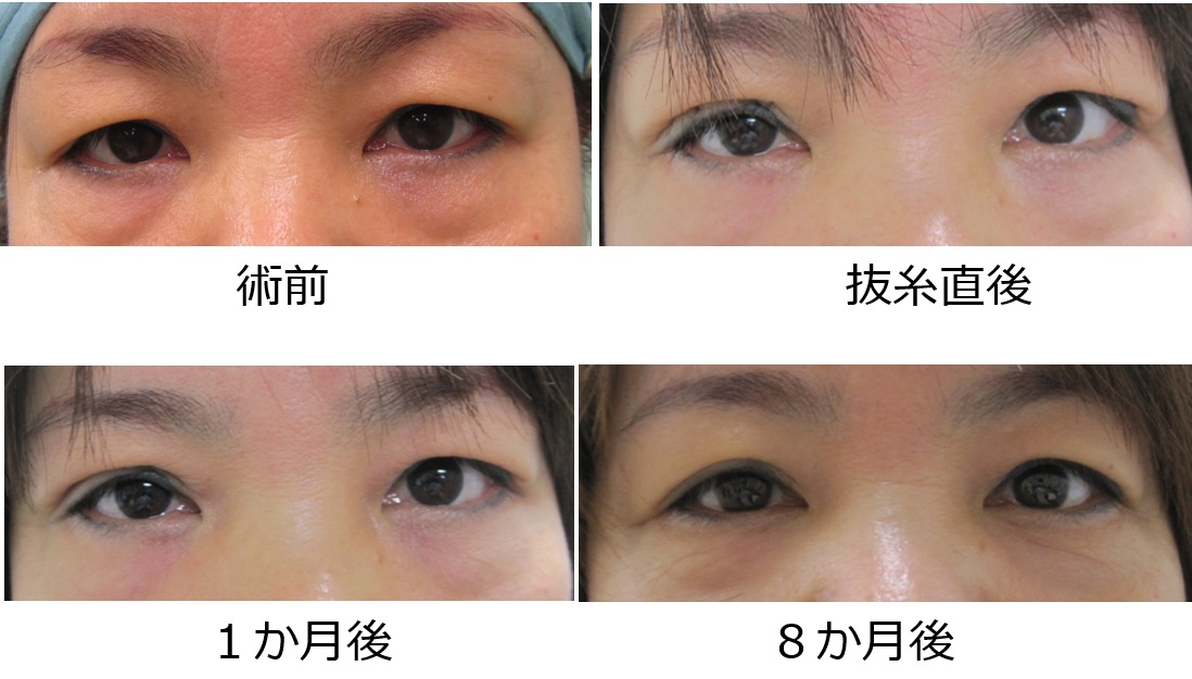 (「早い段階での手術」とは、ほぼ眼瞼下垂がない場合です。目が開きすぎになると、今度は閉じづらくなるため、目が乾燥しがちになってしまいます。眼瞼下垂の診断に合致していればまず問題ありません。)