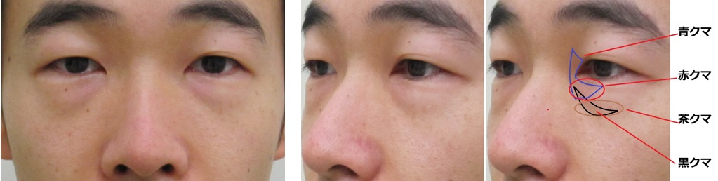 次の方は、青クマが見られますが、それ以外に黒クマと茶クマもうっすらと見られます。