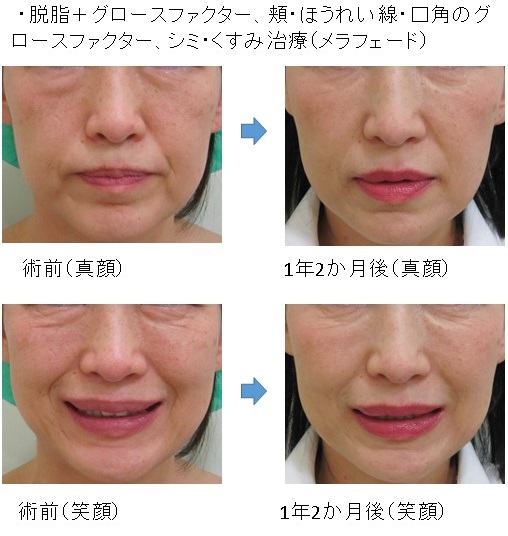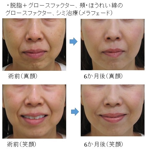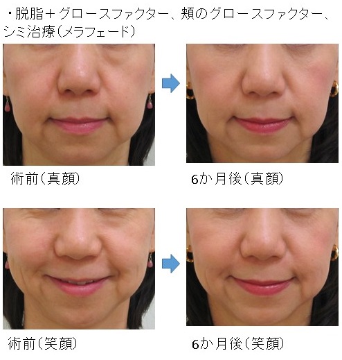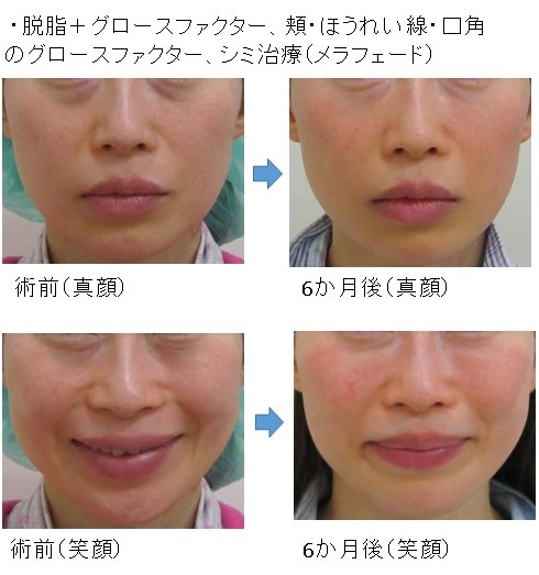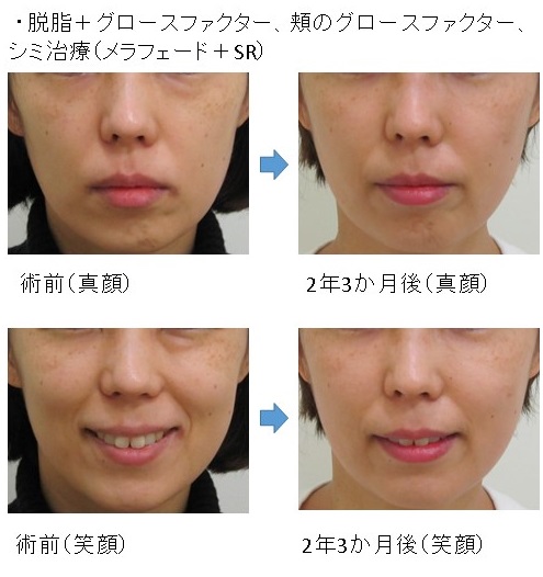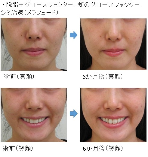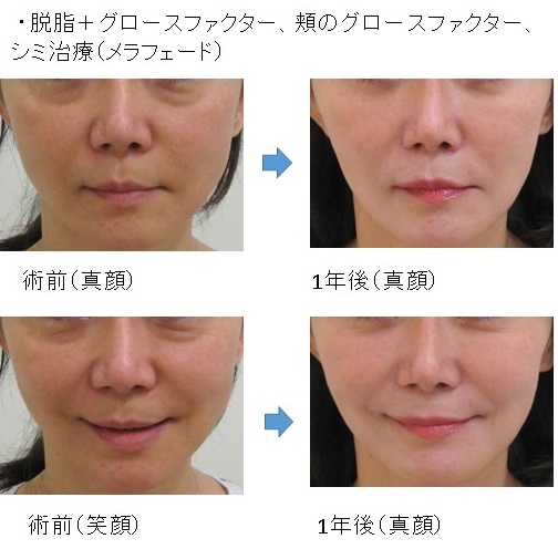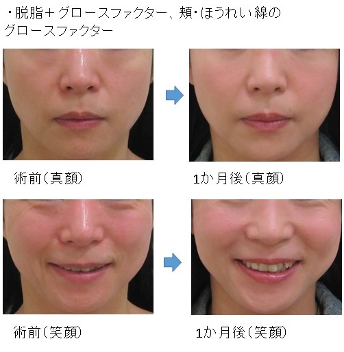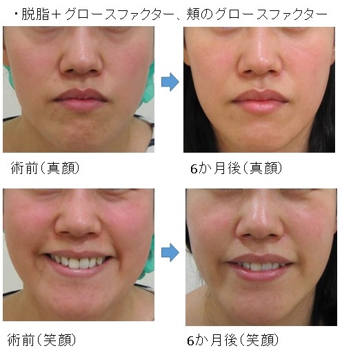 この場合、脱脂により真顔・笑顔の両方で改善します。