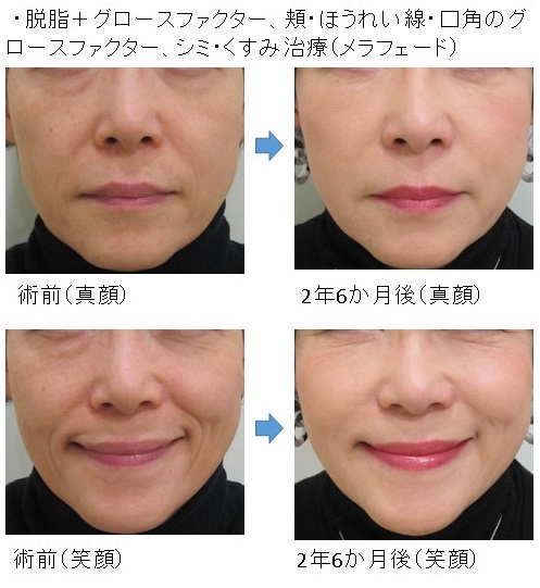 グロースファクターのみによる「笑った時の目の下の膨らみ改善」については、以下をご覧下さい。