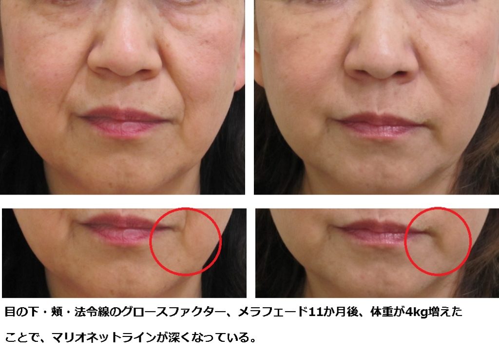 11か月間で体重が4kg増えたとのことですが、、そのためにマリオネットラインが深くなったように見えています。