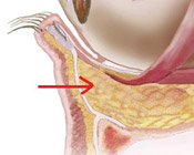 眼球の下には、クッションの役割をする「眼窩脂肪」という脂肪があります。(図の矢印