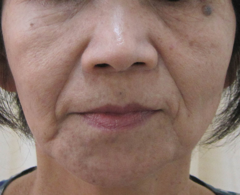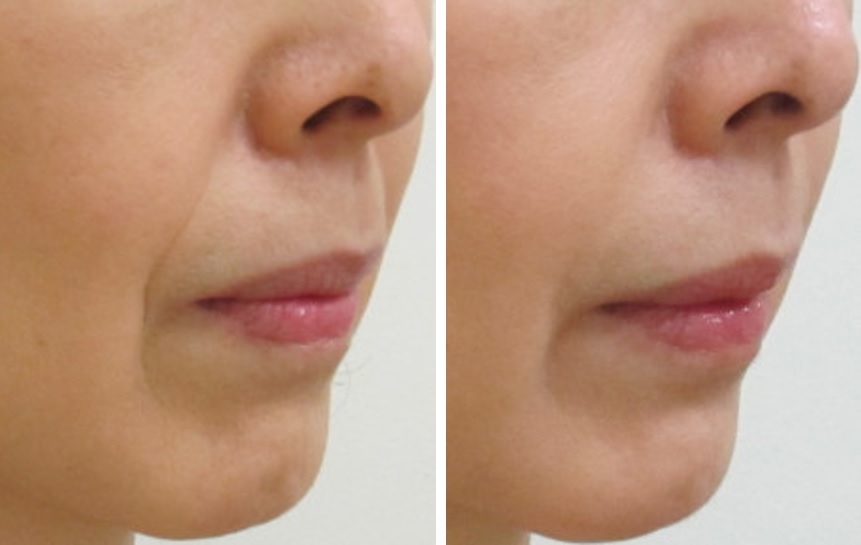 こちらの方は、マリオネットラインは未治療なので、そこはシワが残っています。