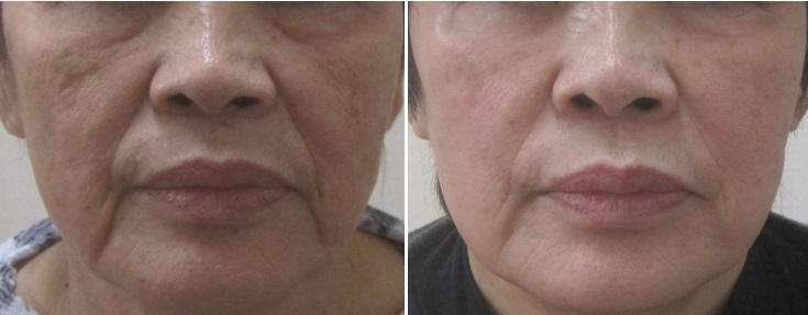 ・頬の脂肪の厚みが比較的少ない方の例・・・シワがきれいなります。