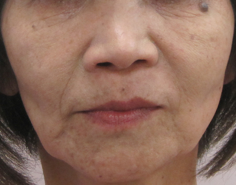 ・両側の頬の脂肪の厚みがある方の例(メラフェードも併用)・・・頬の脂肪の厚みの影によりシワが残っているように見えます。