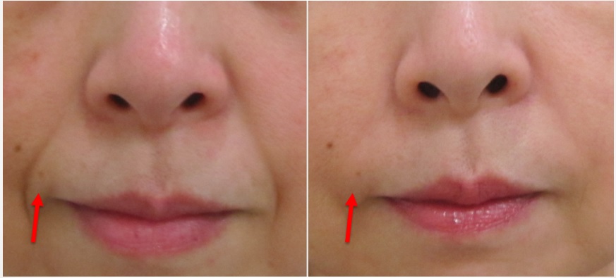 次の方は、ほうれい線・口角のグロースファクターの後に残った口周りのたるみに対して「口角のたるみ取り手術」を受けられています。