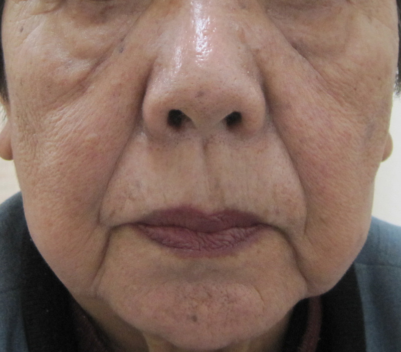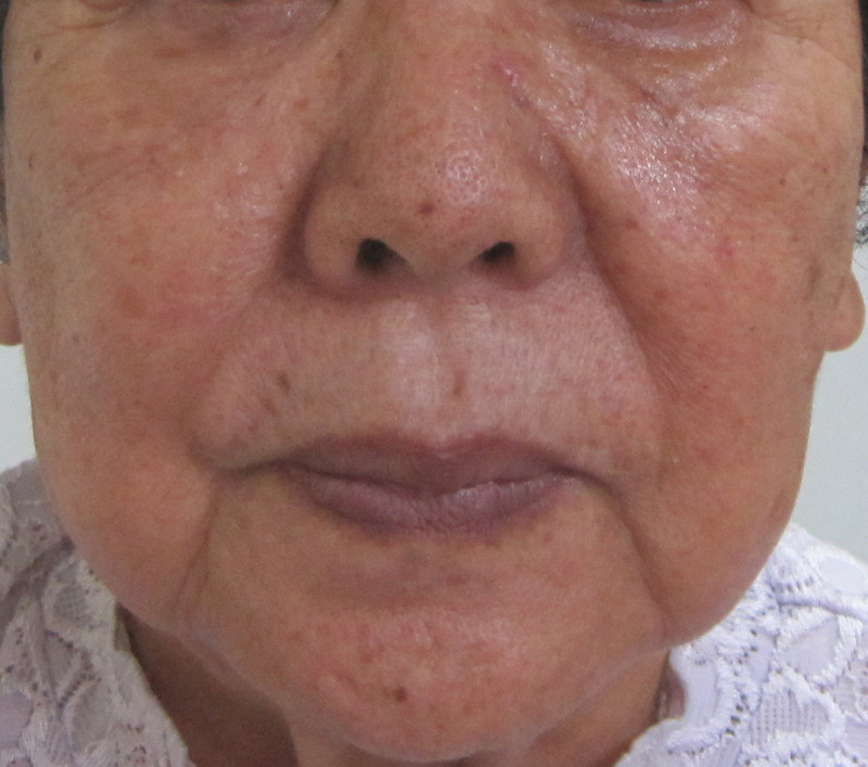 6か月後・・・シワは改善していますが、フェイスラインのたるみは残っています。