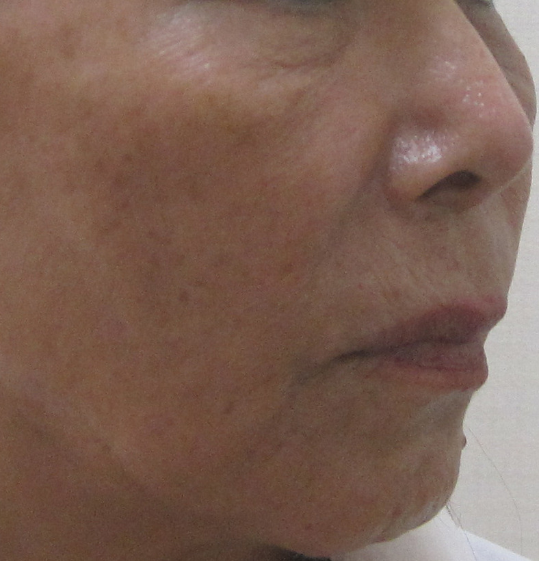 顔全体のグロースファクター注入療法(目の下、頬、ほうれい線、口角)を受けられたモニターの方です。