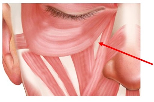 これは頬の脂肪(malar fat pad)の端と一致します。