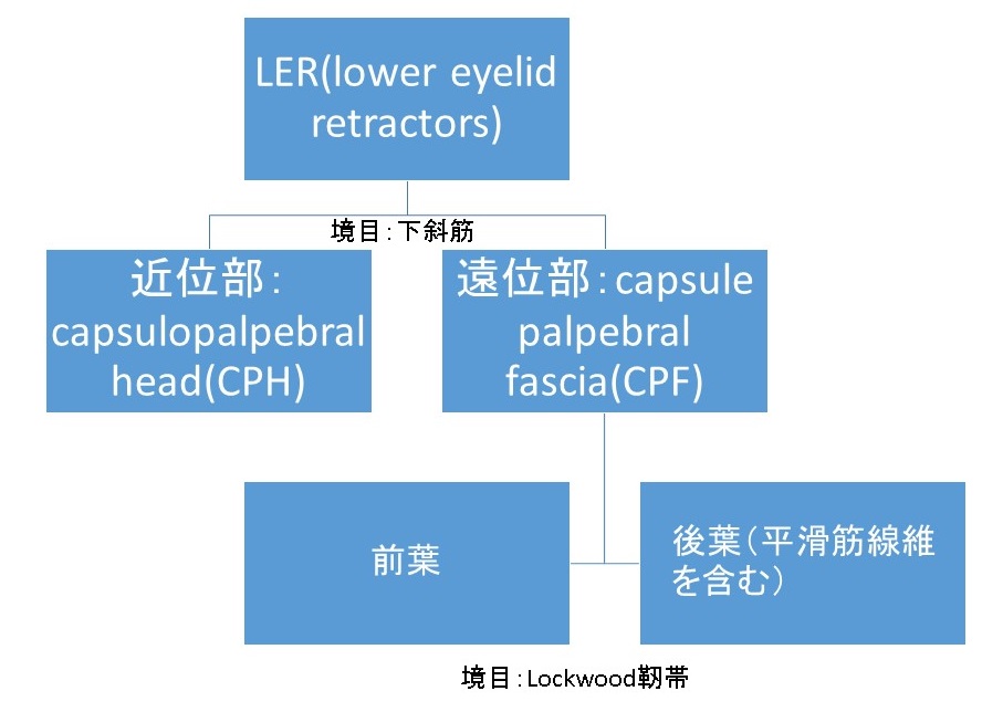 Lockwood靭帯を境に、近位部をcapsulopalpebral head(CPH)、遠位部をcapsule palpebral fascia(CPF)と呼びます。