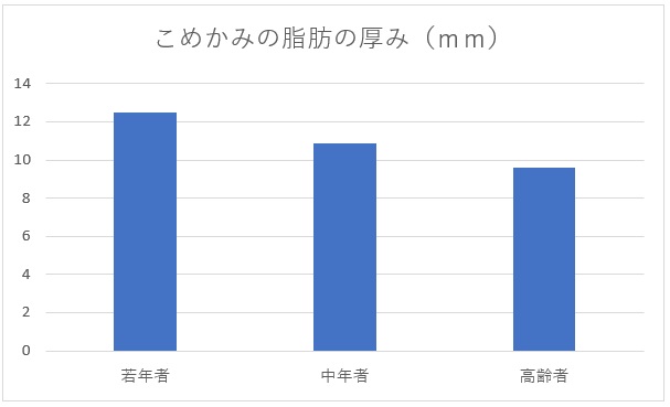 額中央下部の脂肪の厚み:4-5mm(30~60歳:その後加齢で17.6%減少する)