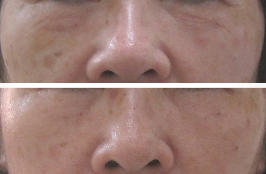 治療前/1か月後・・・小ジワ・シミが全体的に薄くなっています。
