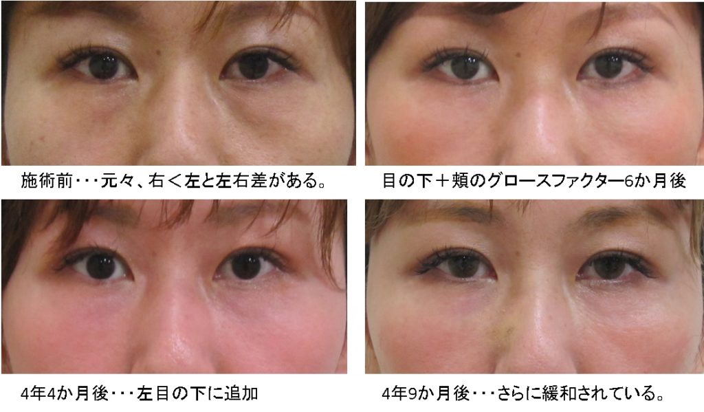 切らない目の下のクマ治療後にグロースファクターを追加した例