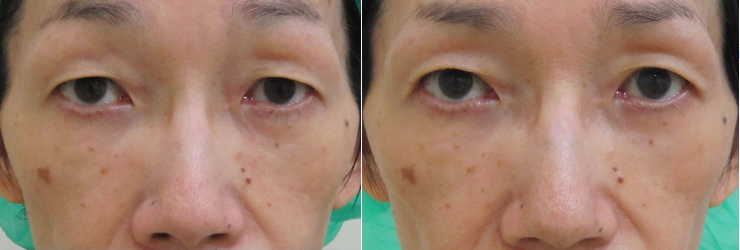 眼瞼下垂術前/6か月後・・・眉毛が自然な位置に下がっています。