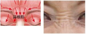 鼻根部(鼻の根元)に鼻根筋という筋肉があります。