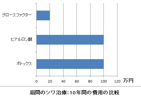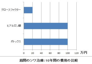 10年間の維持費の目安としては、ボトックス20~100万円、ヒアルロン酸50~100万円、グロースファクター15~20万円程度です。