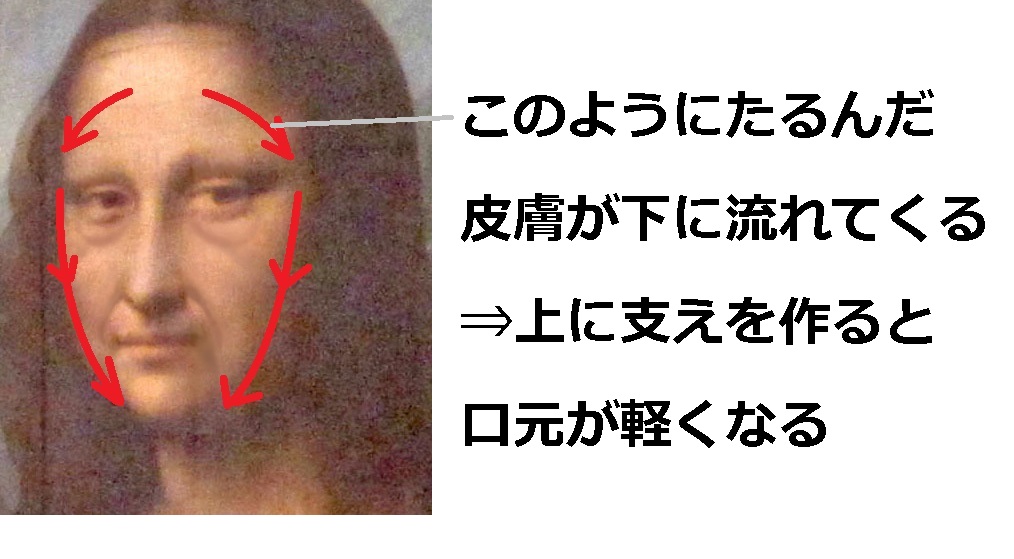 上から落ちてくる頬外側の皮膚の重みに対して、負荷に負けない皮膚のハリが得られるからです。