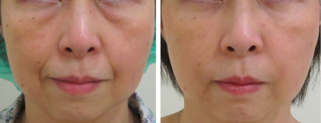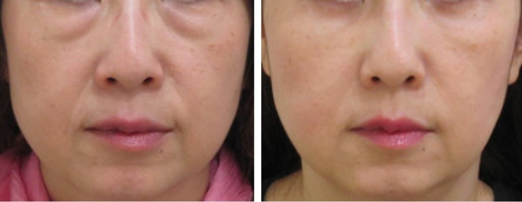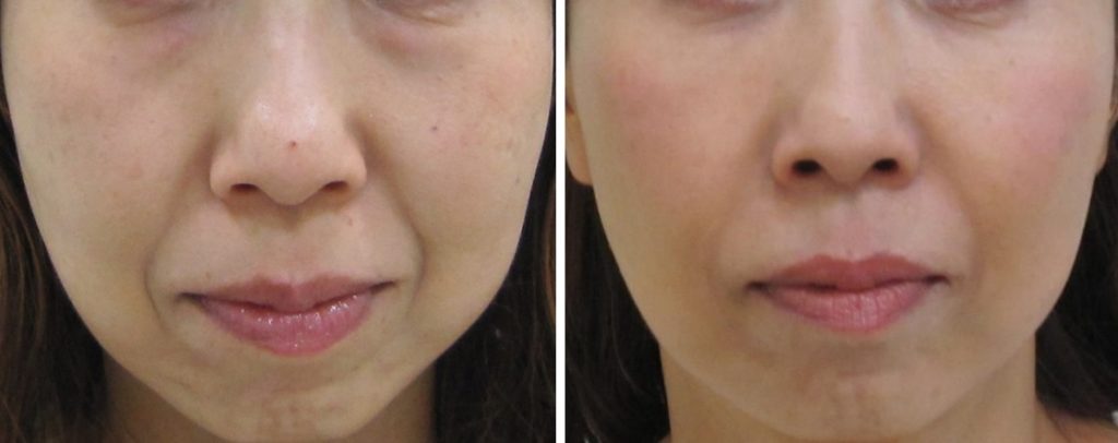 次の方は、目の下・頬・ほうれい線治療を受けられ、口角の部位は未治療です。