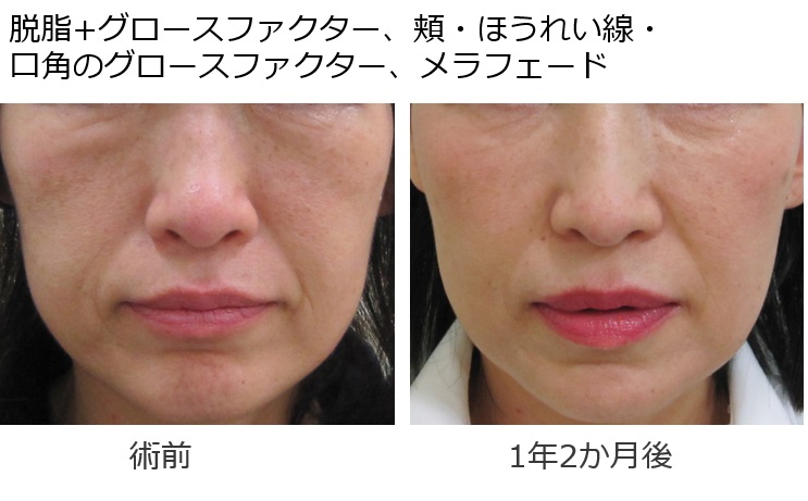 脱脂+グロースファクター、頬・ほうれい線・口角のグロースファクター、メラフェードによる治療を受けられた方です。