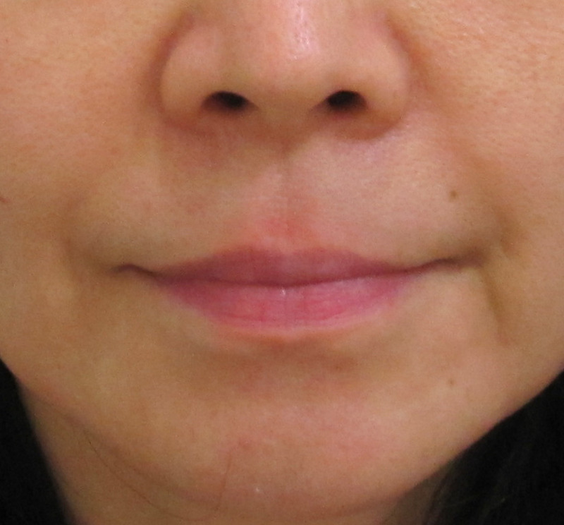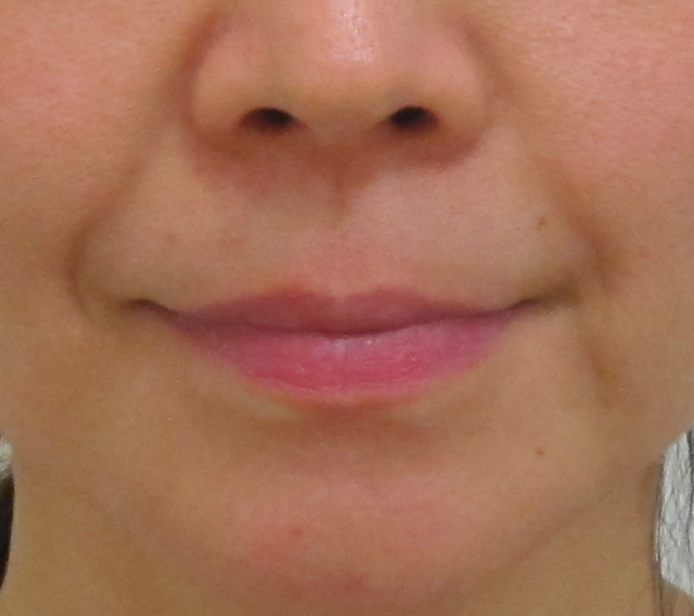 その場合、真顔の状態では、ほうれい線下部の変化は分かりづらく、笑った時だけ改善する形になります。(ただし、後述の通り、動かした時のシワはゼロにはならないことをご了承下さい。)