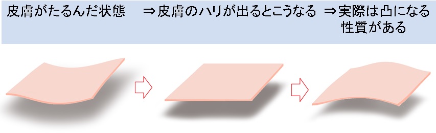 グロースファクターにより皮膚のハリが出ると、皮膚は凸になる性質があります。