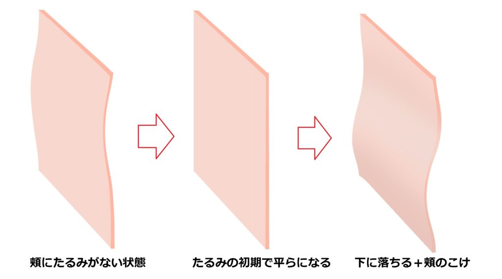 頬であれば、たるみの進行につれて、以下のような変化が起こります。