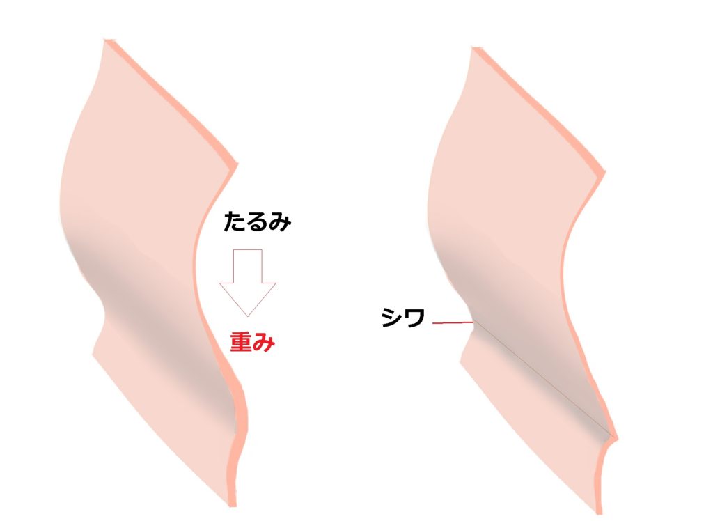 この場合、上はそのままでも下の方にハリを出すことで、シワを改善することが可能です。