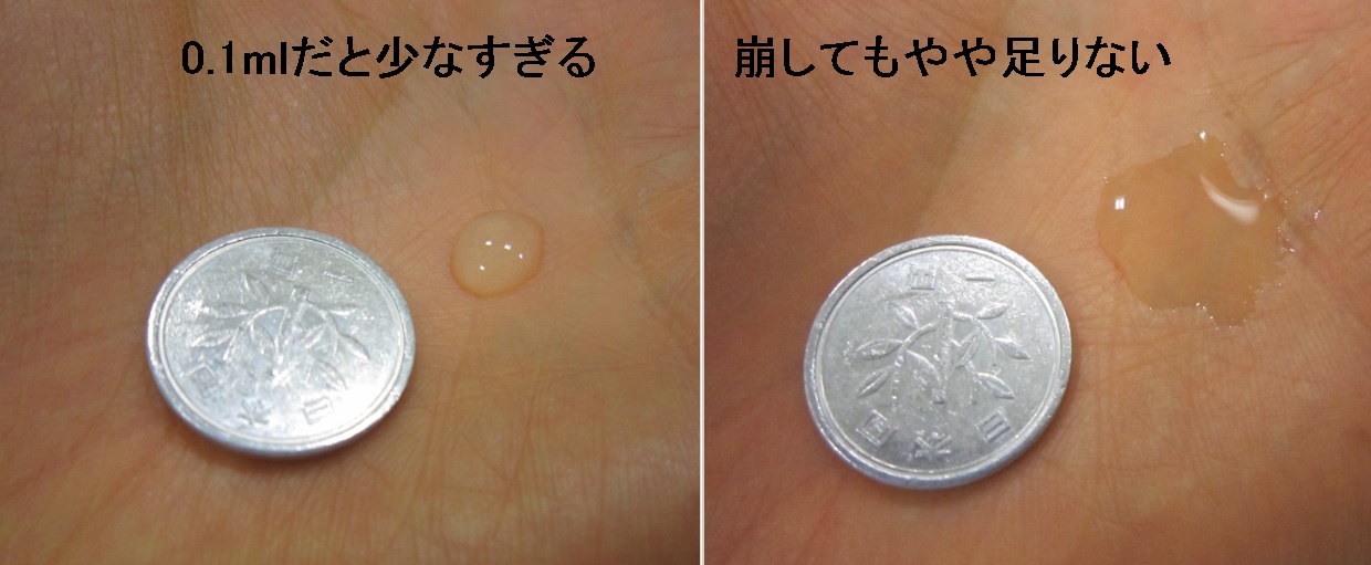 1円玉くらいの大きさの滴下量を目指して下さい。