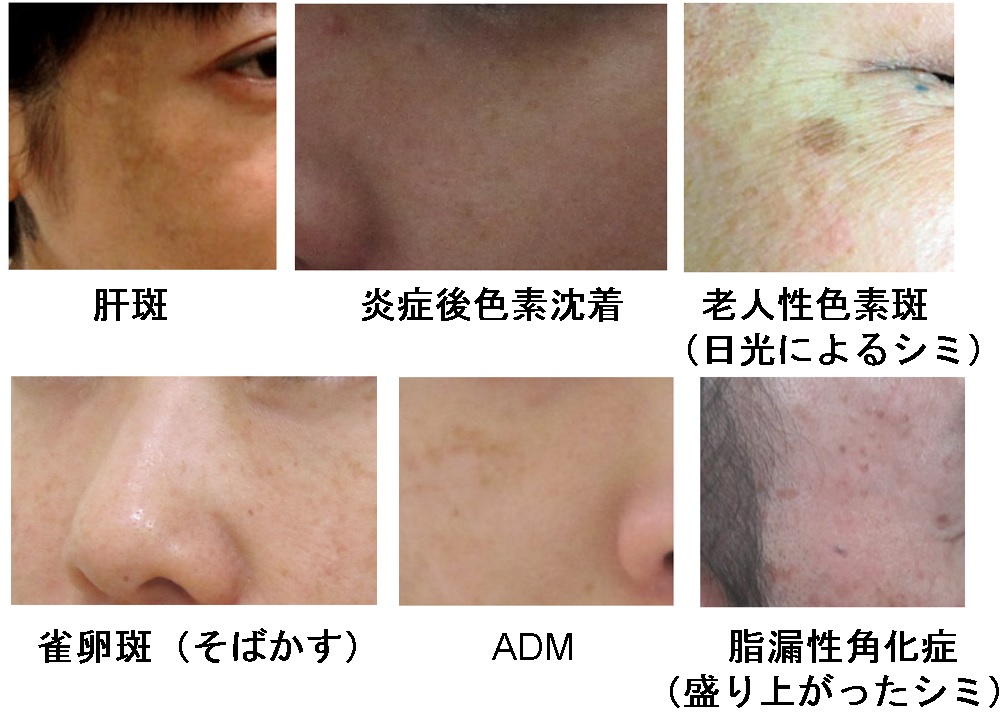 ハイドロキノンの効果を期待できるシミには、肝斑、炎症後色素沈着、老人性色素斑(日光によるシミ)、そばかすなどがあります。