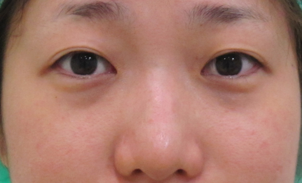 目の下には凹凸や赤み、色素沈着などが混ざっていることが多いですが、目の上にはこのような他の要素は見られないことが多いです。