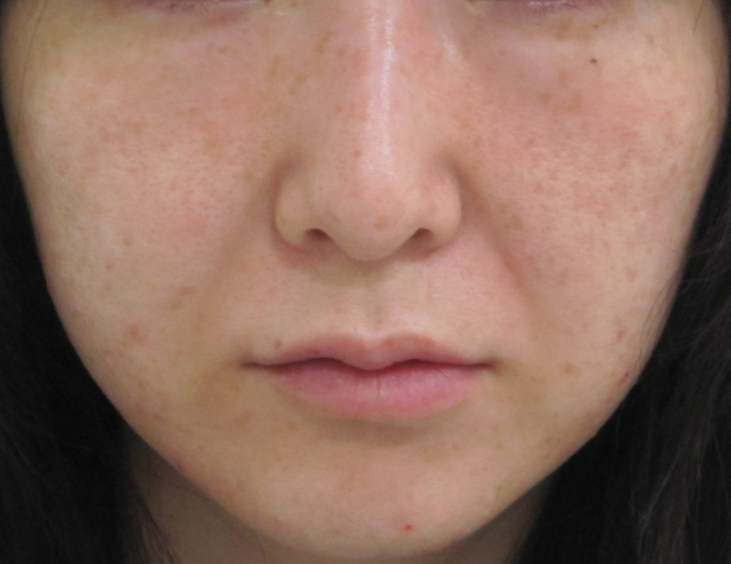 黒クマによる目の下の凹凸や赤みもわずかにあります。
