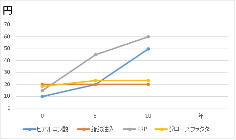 なお、ヒアルロン酸は、1回10万円の治療を2年ごとに施術を行うとして計算しています。