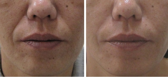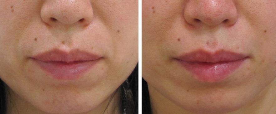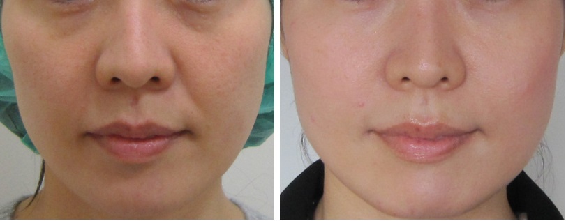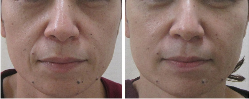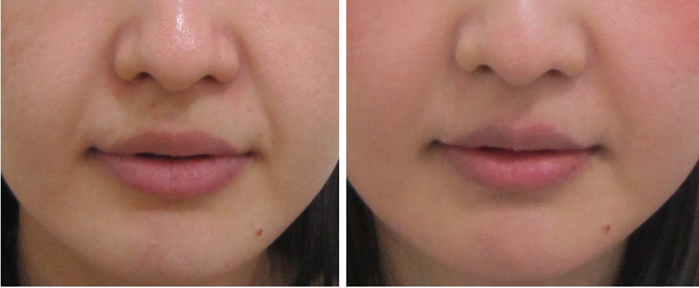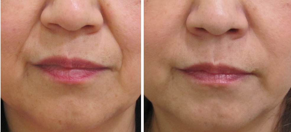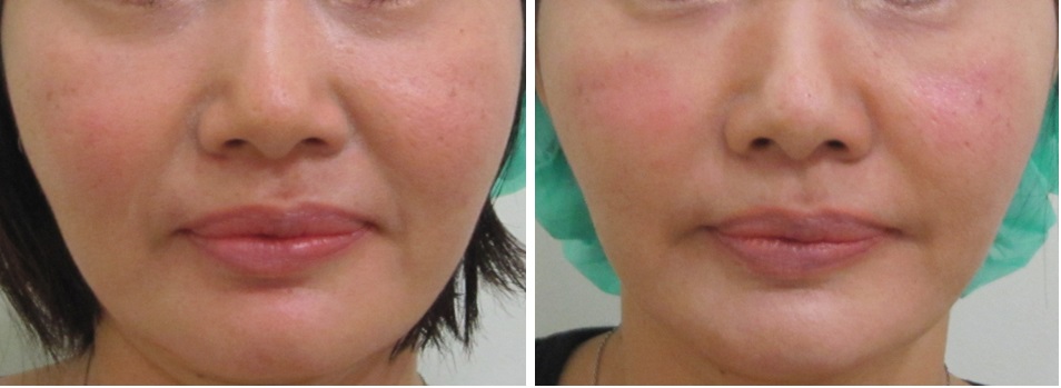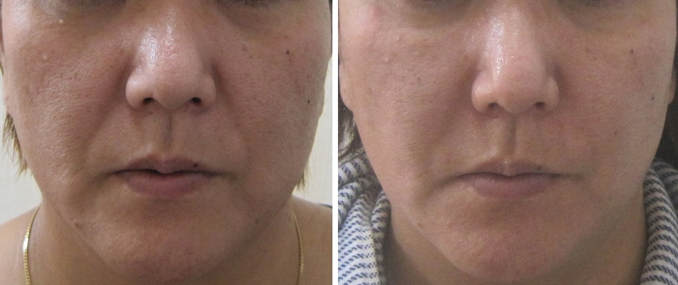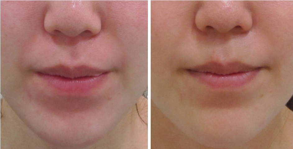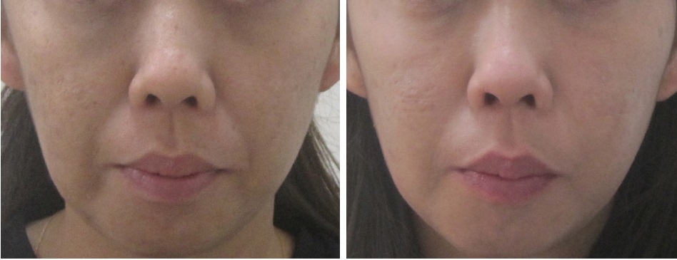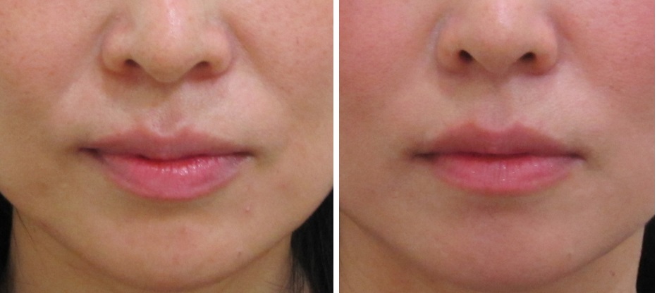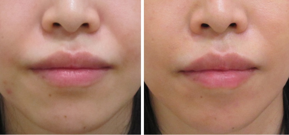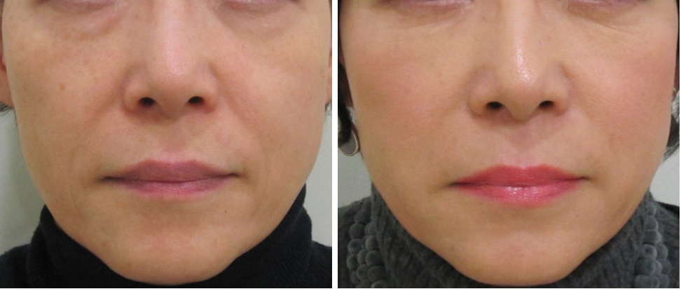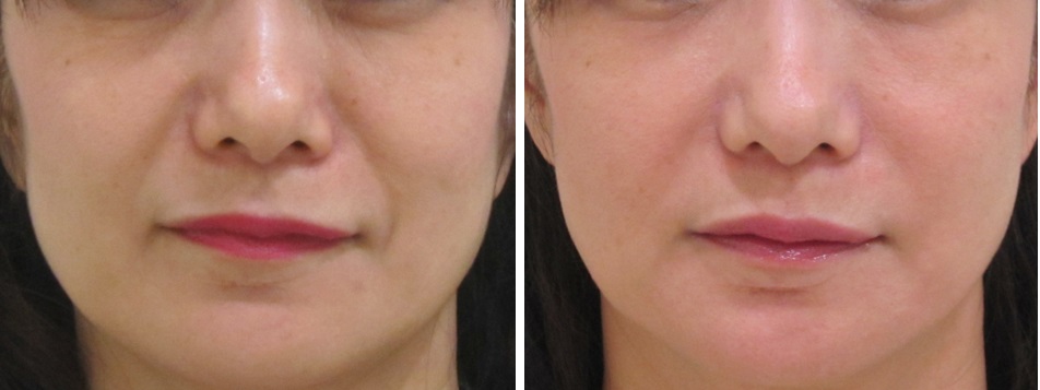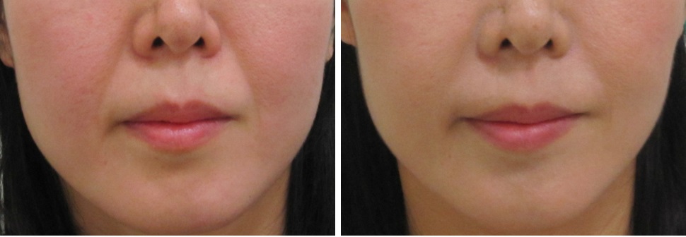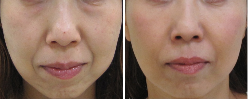 施術前/6か月後・・・こちらの方はほうれい線は治療されていますが、マリオネットラインは治療されていません。