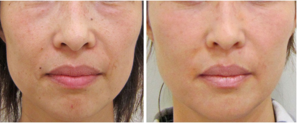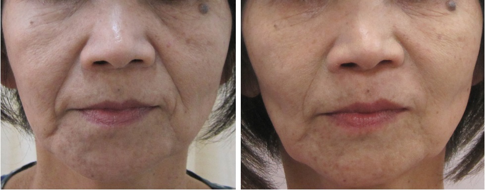 グロースファクターによるほうれい線治療およびメラフェードによるシミ・くすみ治療を受けられたモニターの方です。