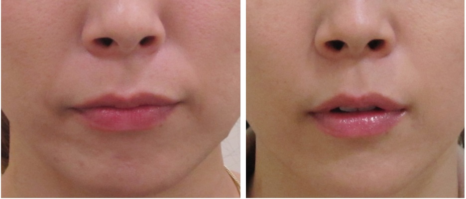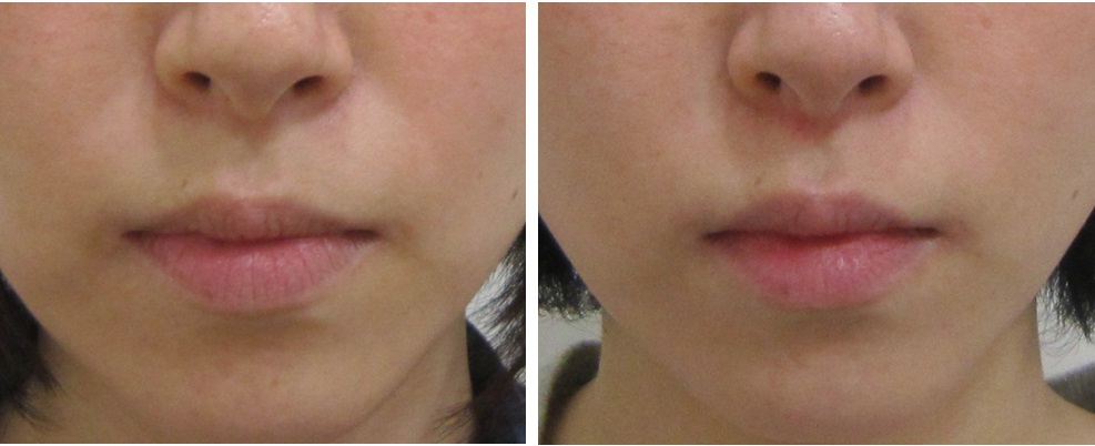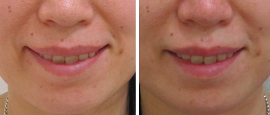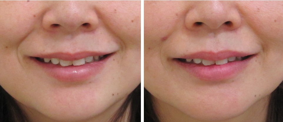 施術前/3か月後・・・笑った状態の比較です。
