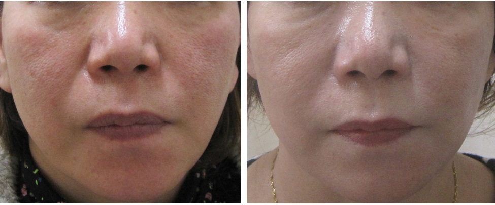 ①グロースファクターによるほうれい線治療、②メラフェードによるシミ・くすみ治療を受けられたモニターの方です。