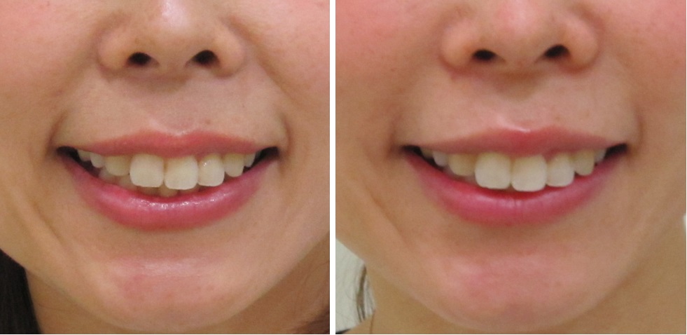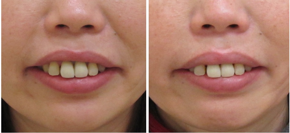施術前/6か月後・・・笑った状態の比較です。