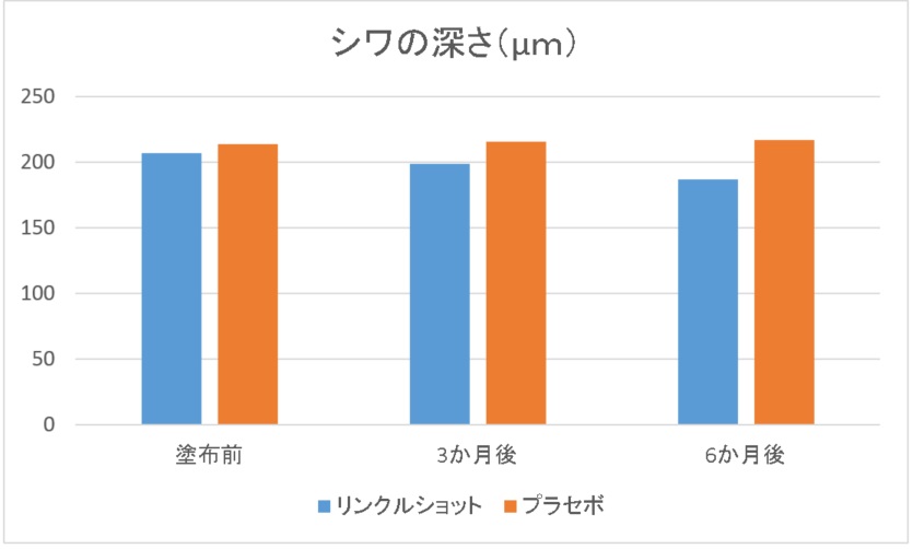 したがって、通常のほうれい線のような深いシワに対しては、少なくともこの実験期間である半年間では変化は実感しづらいことが考えられます。