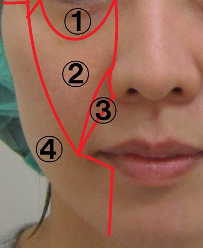 目の下と頬は連続している箇所で、なおかつ境界が多少あいまいな部位です。