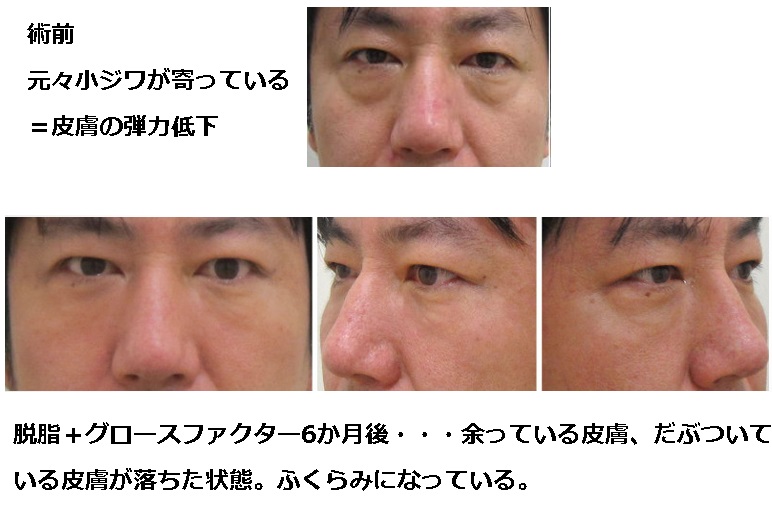 皮膚の弾力が低下している場合、脱脂+グロースファクター後、余った皮膚が膨らみになることがある