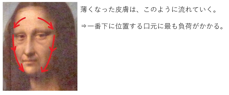 その原因は、口元の横の皮膚が伸び、弾力が低下するためです。