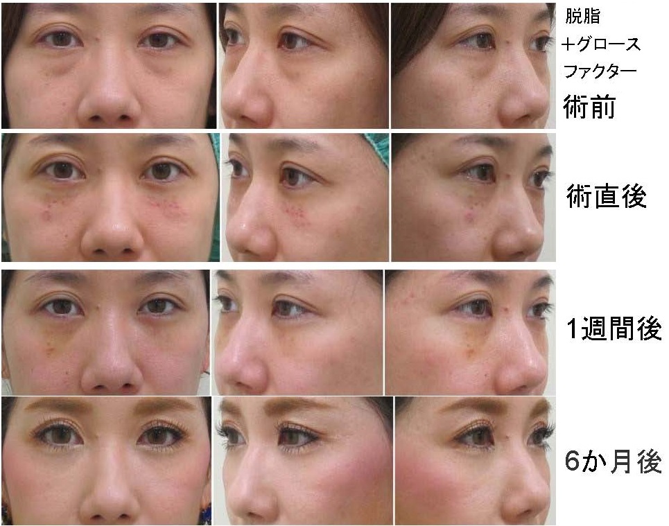 また、グロースファクターの注射による内出血が術直後に見られます。
