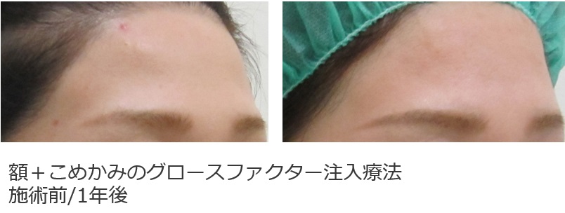 次の方は、額とこめかみに対して、グロースファクターによる治療を受けられています。
