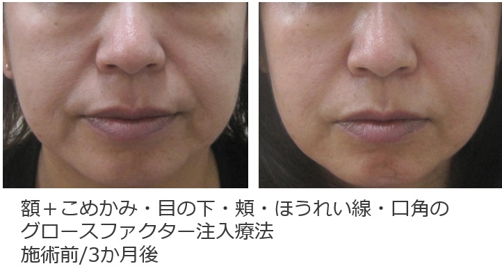 その場合は、表皮レベルのシミ・くすみ・小ジワ治療(グロースファクターは、真皮レベルの治療)も行うとよいです。