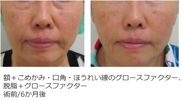 こめかみのグロースファクターの併用による口元のたるみ改善例