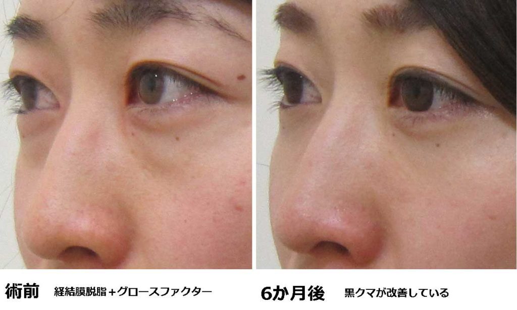 前述の通り、目の下にくぼみがある場合は、目の下のくぼみ治療も同時に行わないと、脱脂後にくぼんだ印象になってしまうので注意が必要です。
