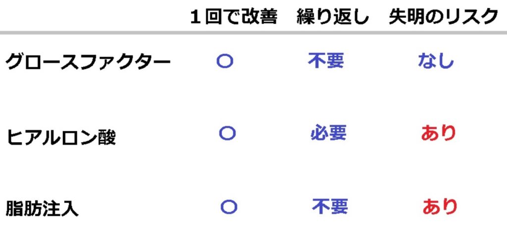目の下のくぼみの治し方の比較は、以下の通りです。